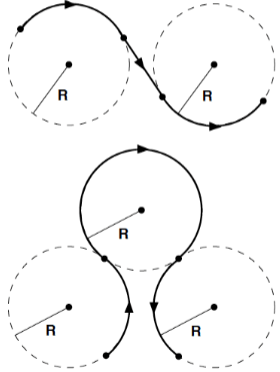 I generated an optimized vehicle trajectory using Dubins Curves. A Dubins Path uses arcs with a turning radius that matches the vehicle’s minimum turning radius. This results in an optimal path between two poses (see right).